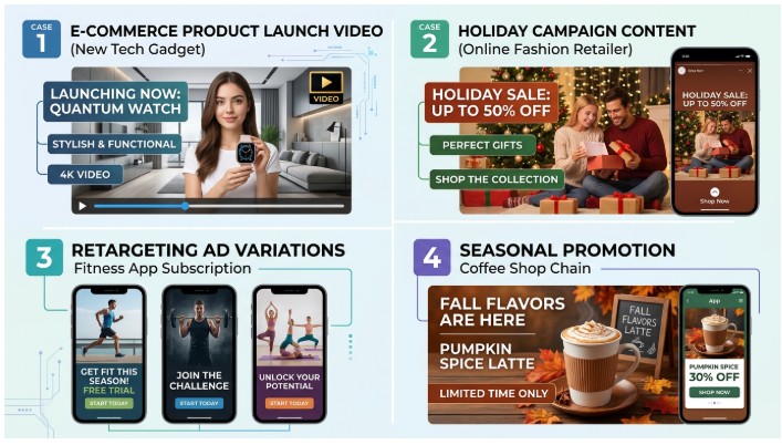 E-commerce Product Launches Instead of waiting for influencer partnerships to materialize, brands can generate UGC-style product demos and reviews within hours of a product launch, ensuring timely visibility.